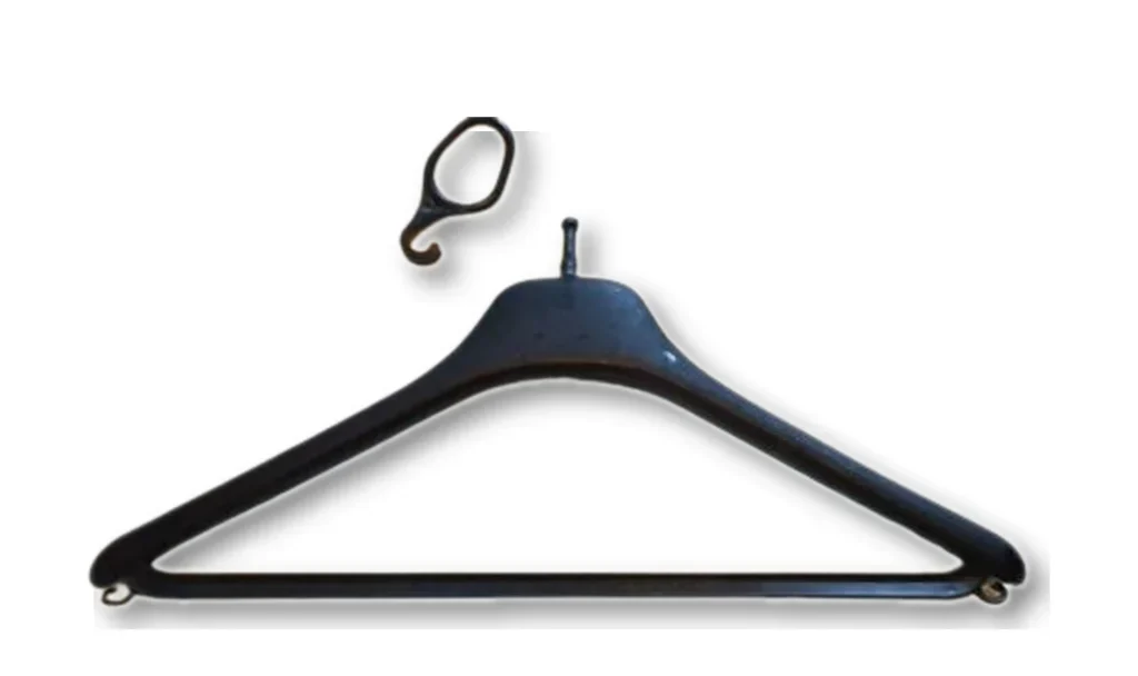 Robust hotel hanger with hook and non-slip bar, supplied for high-turnover properties.